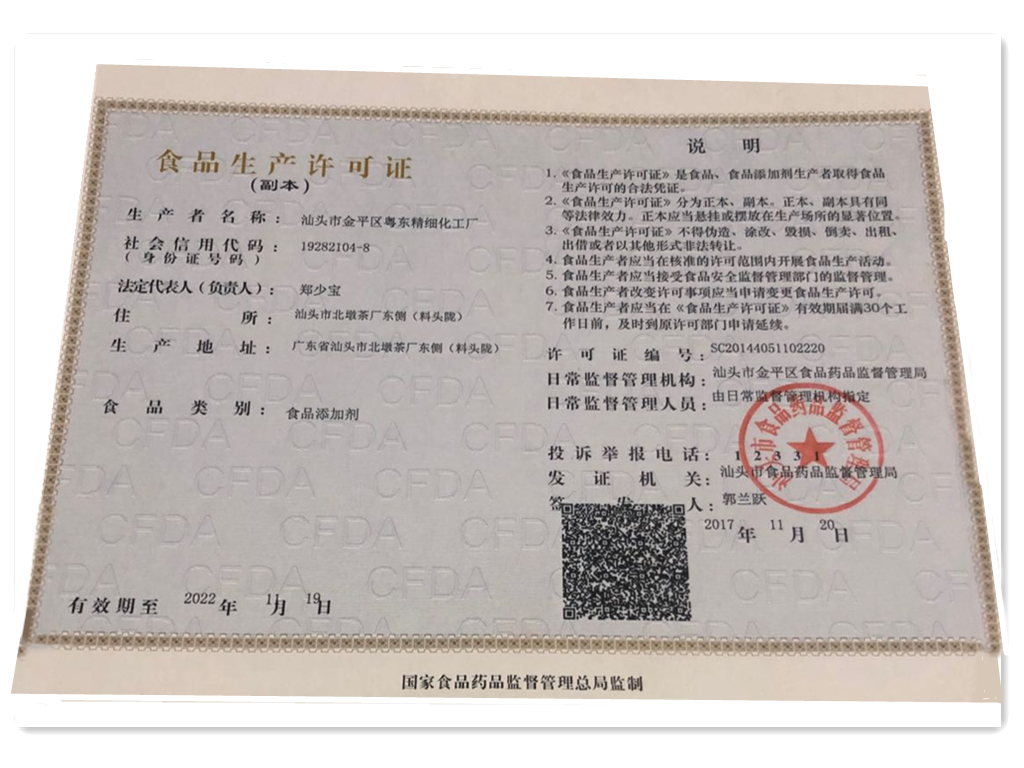 获国家批准的生产食品添加剂的生产企业。